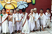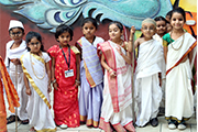 The Special assembly started with garlanding the portrait of Mahatma Gandhi by the little kids of Chetna Kids paradise. All our tiny tots were dressed as Gandhiji and Kasturba which filled the environment with patriotic feeling. They conveyed the message to used Khadi Clothes and discard the foreign materials. School Director Mrs. Chetna Tank, urged the students to be as Gandhiji , simple living and high thinking. School Principal Mrs. Manjiri Joshi appreciated the students .